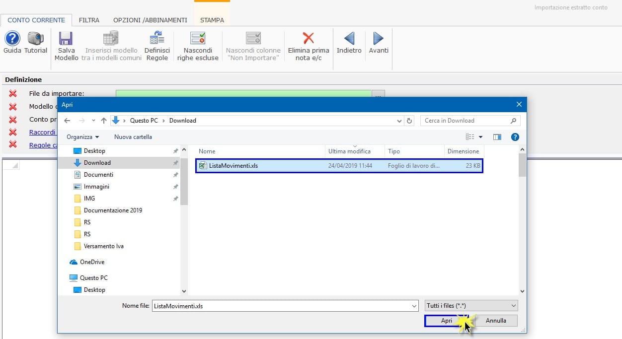 Il software consente di importare file di estratto conto non solo in formato Excel ma anche in TXT e CSV!