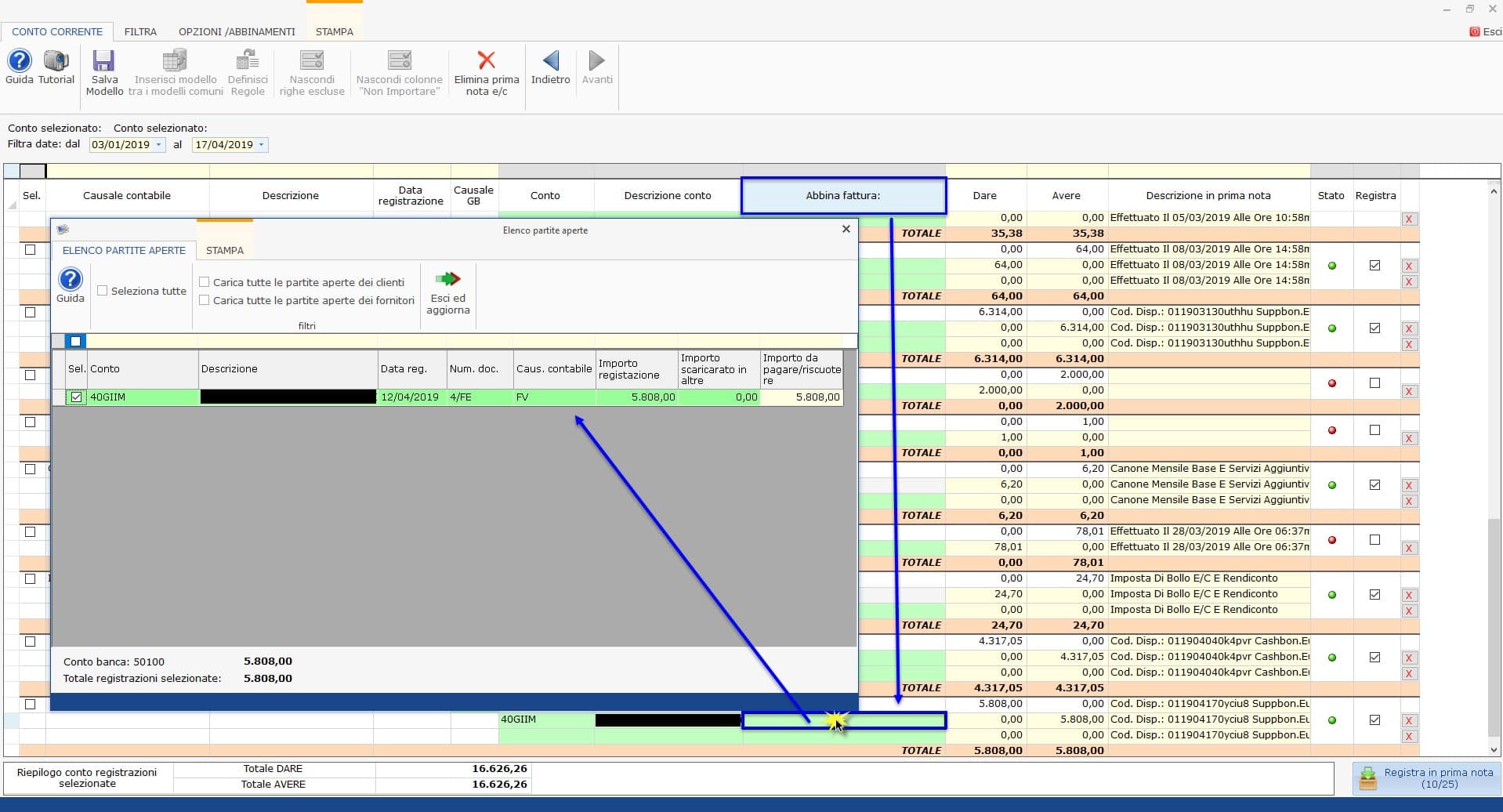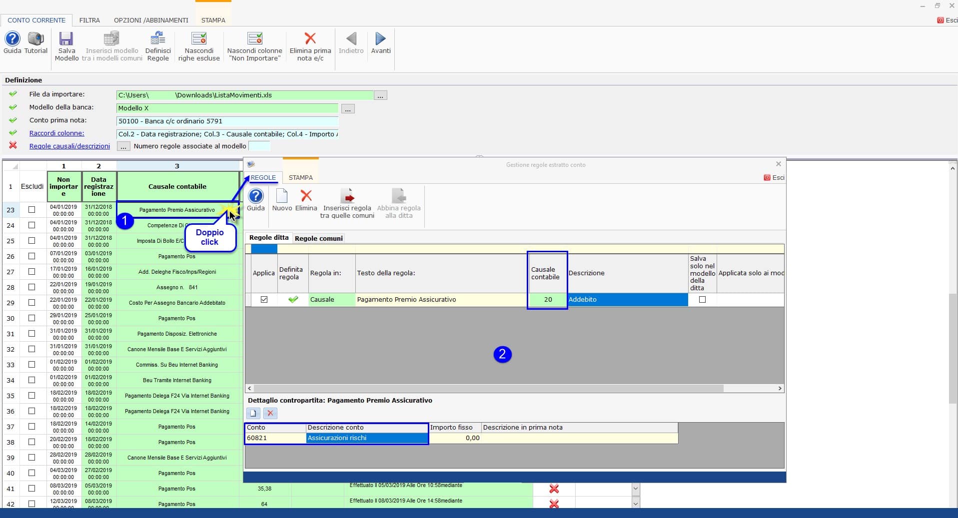 Alla chiusura della maschera la regola sarà applicata a tutti i movimenti di estratto conto “Pagamento premio assicurativo” (nel nostro caso).