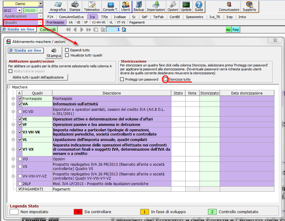 - storicizzare l’intera dichiarazione tramite la gestione “Quadri”.