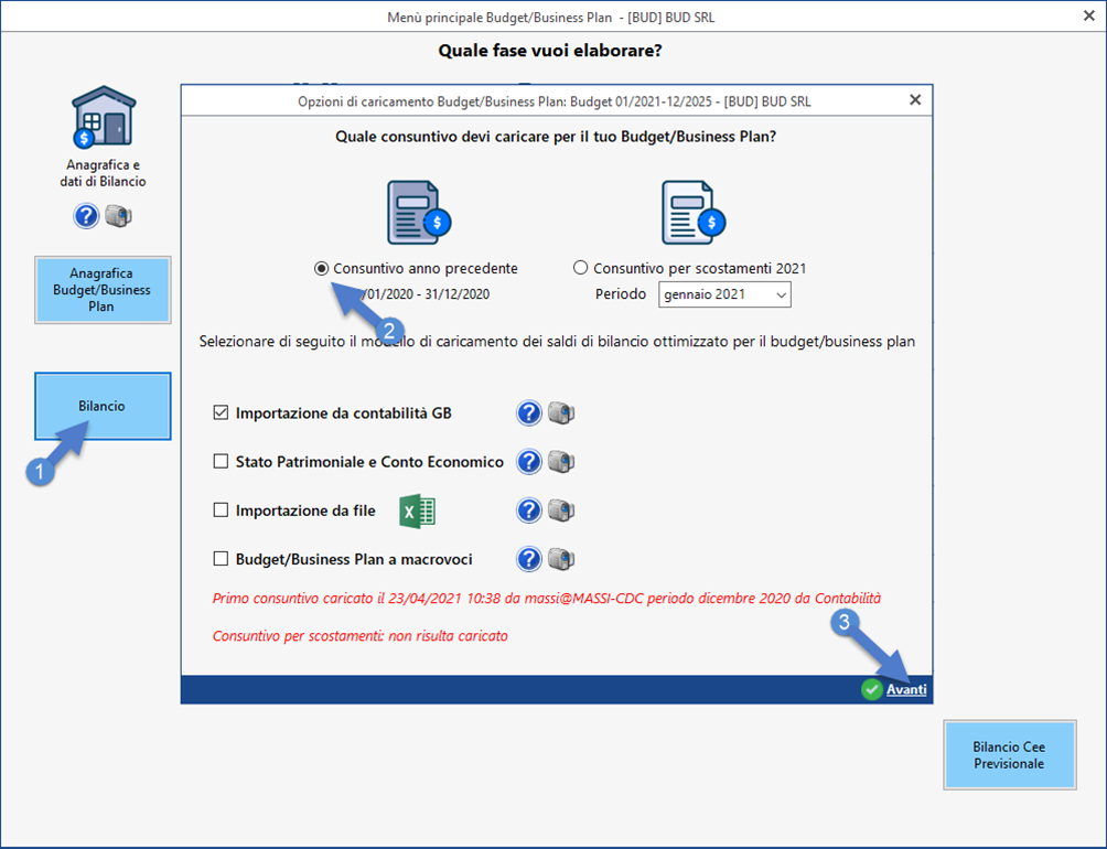 N.B. L’uso del piano dei conti 2021 vale sia per modificare/ripristinare i raccordi che per le importazioni dei saldi da SPCE o da Excel (cioè non da contabilità) in quanto Il Budget/BP utilizza SEMPRE il piano dei conti dell’anno corrente (2021) anche se si carica l’anno precedente (2020) per omogeneità con il piano dei conti degli scostamenti mensili che è sempre quello corrente (2021).