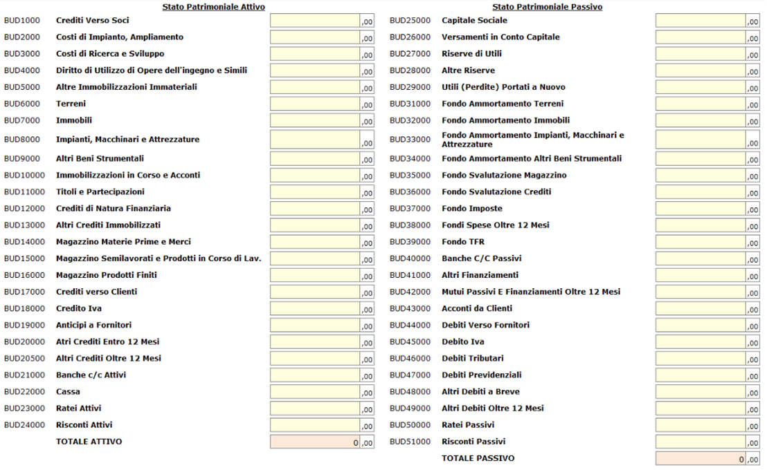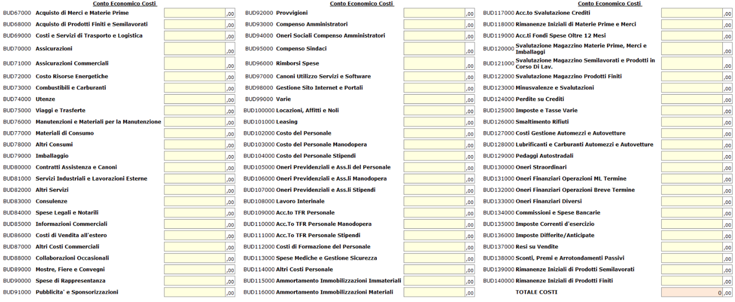 Le voci sintetiche del Budget e del Business Plan sono fisse: