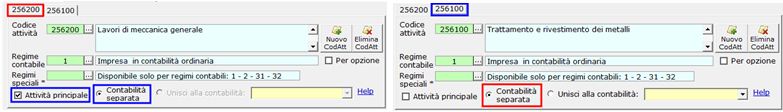 Anagrafica ditta: inserimento dei 2 o più codici attività, mettere il flag su codice attività principale mentre altri contabilità separata.