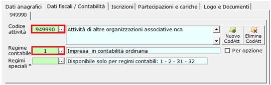 ContBil: selezionare il codice attività in cui si deve registrare posto a fianco dell’anno dell’applicazione;