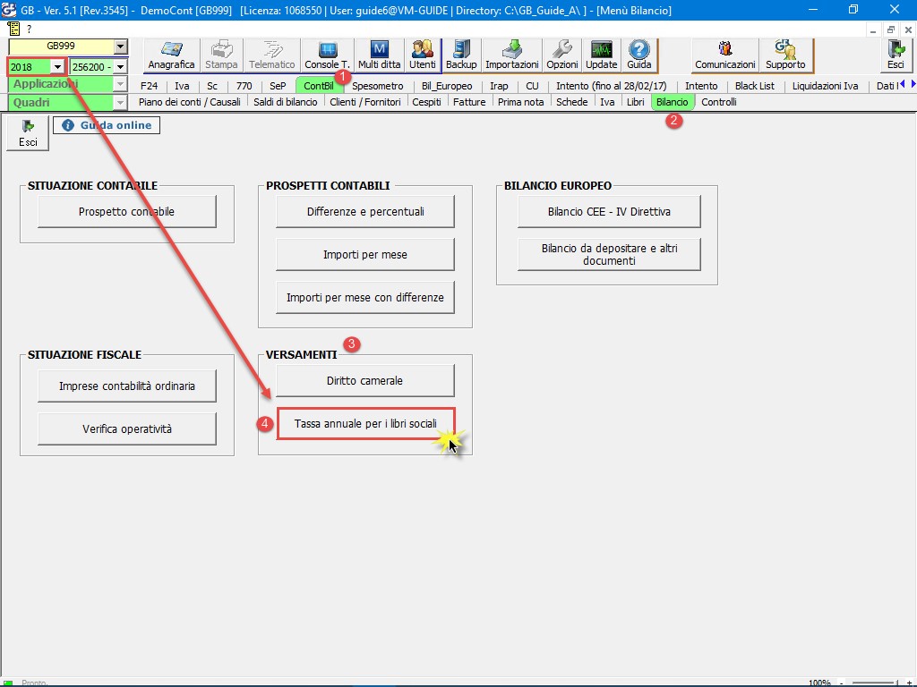 In Contabilità GB, il calcolo della “Tassa annuale Libri Sociali 2018” si esegue da: