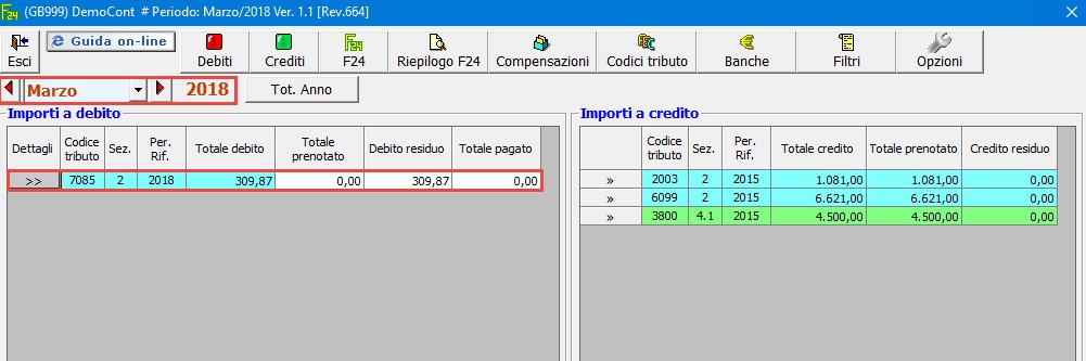 All’interno della gestione della “Tassa annuale per i Libri sociali” 2018, dopo aver inviato il debito da versare è possibile accedere direttamente all’applicazione “F24” cliccando nel pulsante . In automatico si apre l’F24 nel mese di versamento del tributo, Marzo.