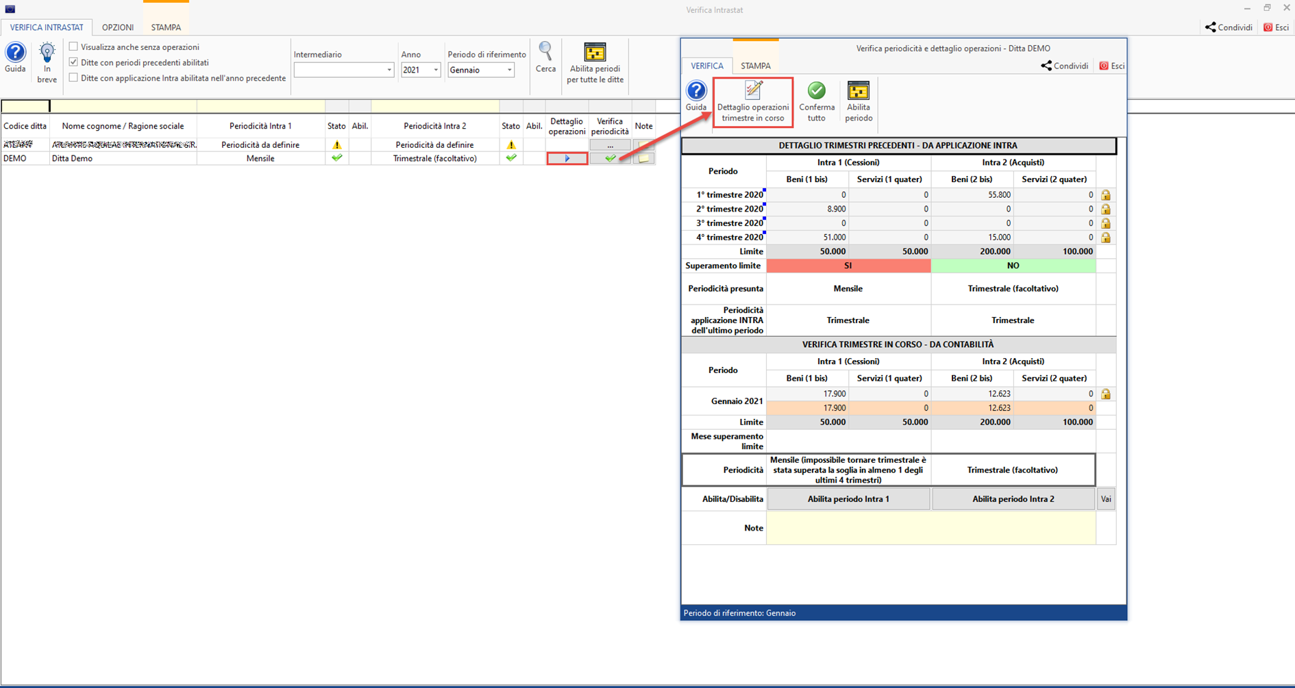 - Bottone “Dettaglio operazioni trimestre in corso”, all’interno della verifica periodicità